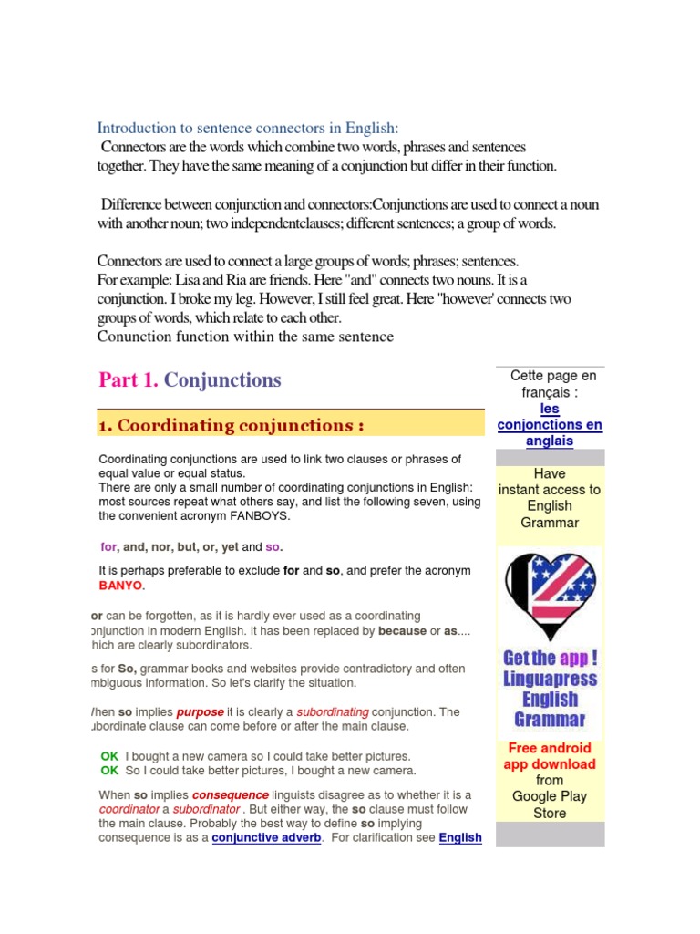 Conjunctions Connectors Coordination And Subordination
