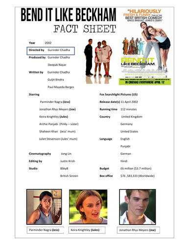 Bend It Like Beckham Fact Sheet Teaching Resources