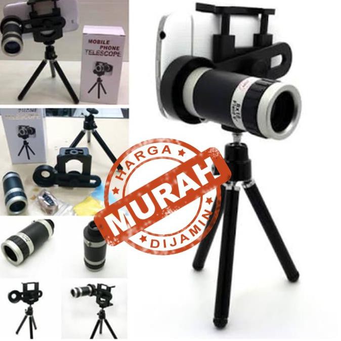Paket Lengkap Smartphone Lensa Tele Zoom 12x Universal HP plus Tripod dan holder | Lensa pembesar, Tutup lensa, Lensa